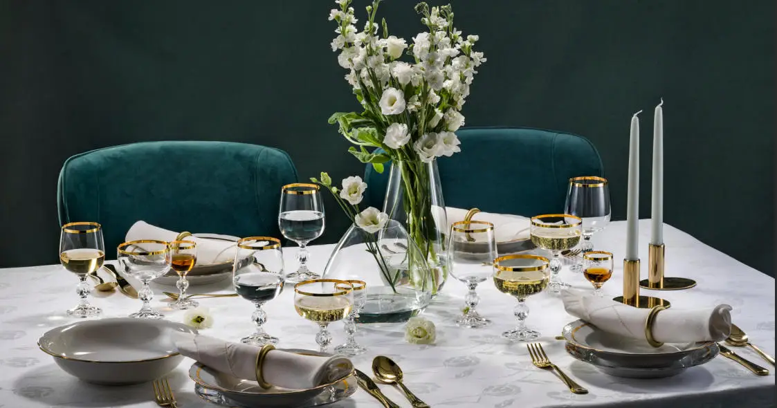 Home Deco Handicraft 350ML Bordeaux Crystal Red Wine Glass with Gold Pattern